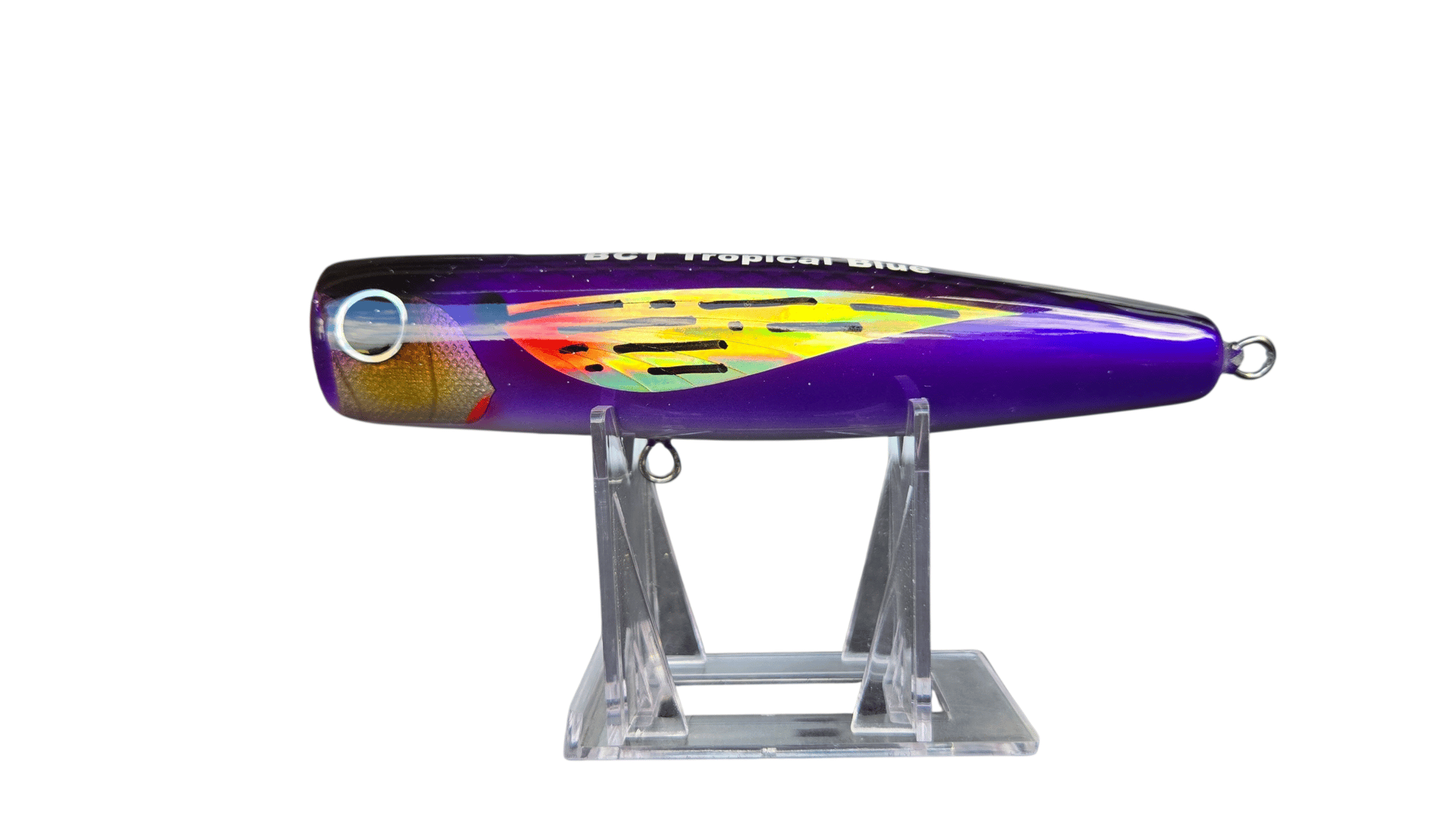 This Slim popper creates more of awesome bubble trail with aggressive sweeps, these movements displace water, creating a commotion that attracts fish. Varying the retrieve speed and pausing between pops can also increase the lure's effectiveness.